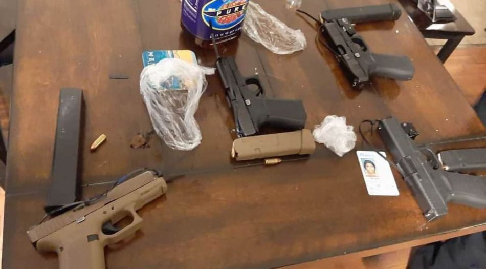 La policía recuperó un Dodge Ram robado, un rifle de asalto, siete pistolas, marihuana y una balanza. Tres de las pistolas fueron sustraídas.