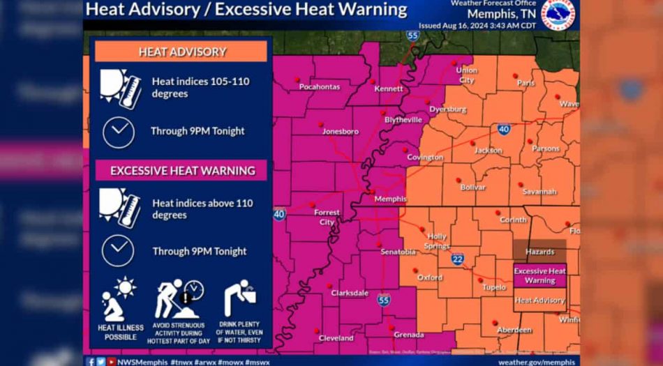 El Servicio Meteorológico Nacional (NWS) en Memphis ha emitido alertas importantes debido a las condiciones climáticas extremas que afectan la región. La noche del 15 de agosto de 2024 se implementó una Advertencia de Calor Extremo para el área de Memphis y sus alrededores.