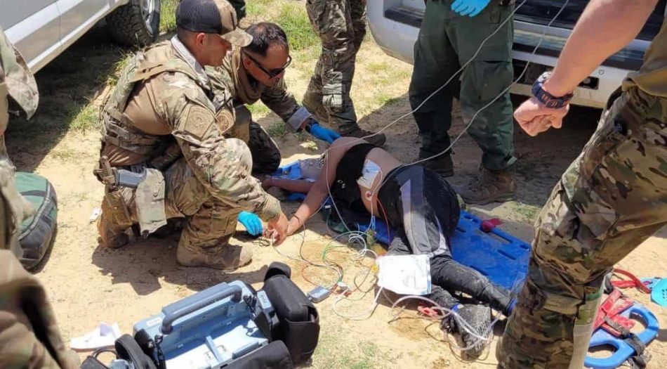 En el río Bravo, un grupo de personas intentaba cruzar irregularmente cuando se recibió un informe que alertaba a los agentes de la Patrulla Fronteriza de EE. UU. sobre la situación. El Destacamento de Operaciones Especiales del Sector de Laredo (SOD) actuó de inmediato.