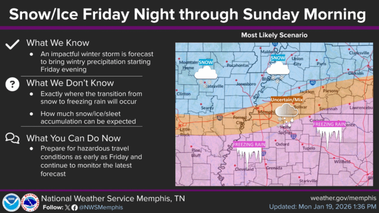Posible tormenta invernal podría afectar a Memphis desde el viernes por la noche
