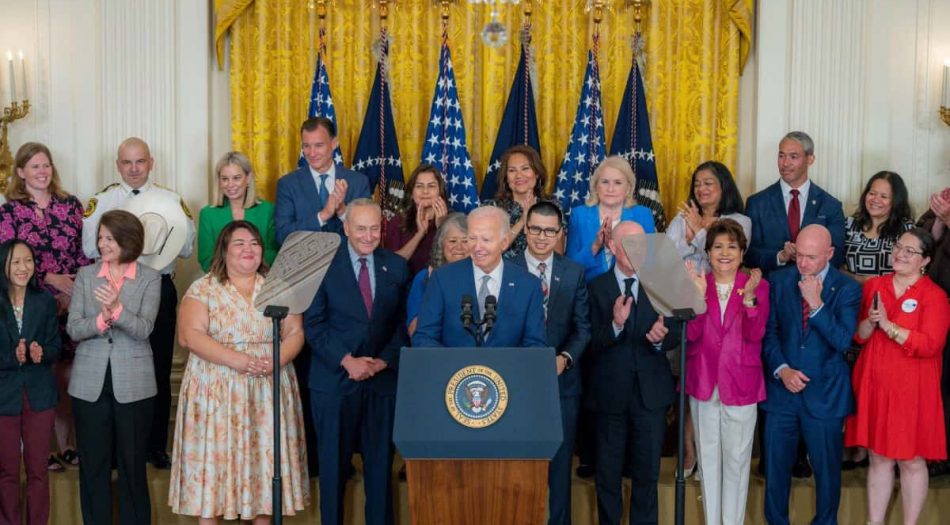 “La Estatua de la Libertad no es una reliquia de la historia estadounidense. Sigue representando lo que somos”, declaró Biden desde una abarrotada Sala Este de la Casa Blanca, llena de activistas, congresistas demócratas e inmigrantes potencialmente beneficiados por el programa. “Pero también me niego a creer que para que sigamos siendo un Estados Unidos que abraza la inmigración, tengamos que renunciar a proteger nuestra frontera”.