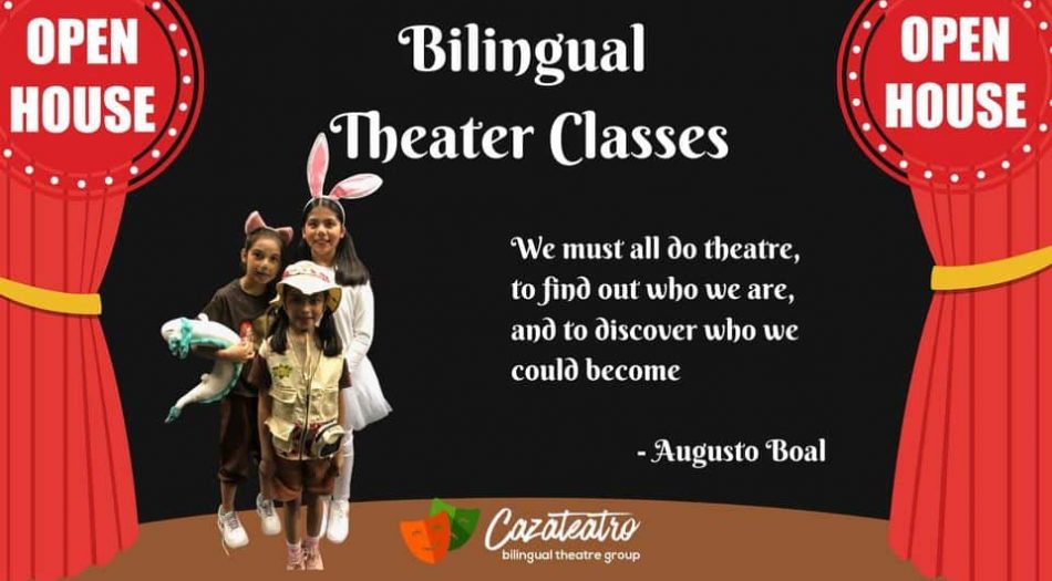 El sábado 12 de agosto de 2023, de 11:00 a 12:00pm, Cazateatro Bilingual Theater Group abrirá sus puertas para las inscripciones al curso de Teatro Bilingüe.