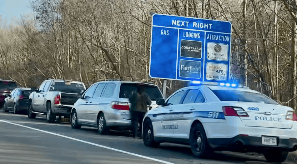 Los oficiales vieron que el lado del pasajero del Mustang estaba abierto y no había nadie dentro del automóvil.