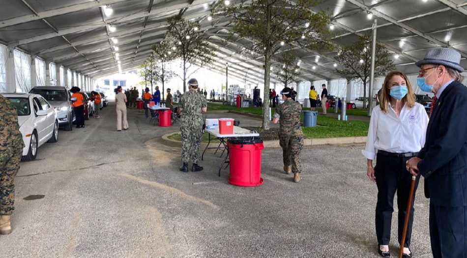 El edificio Pipkin fue tomado el miércoles por la Agencia Federal para el Manejo de Emergencias de los EE. UU. (FEMA) Como un sitio de vacunación masiva con la capacidad de distribuir 3,000 vacunas al día. Abierto 12 horas al día, siete días a la semana, el objetivo es administrar 21.000 vacunas a la semana.
