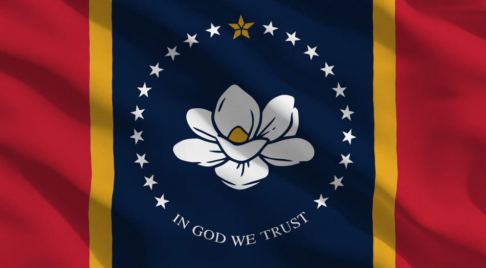 El público presentó más de 3.000 propuestas y la comisión eligió el diseño que tiene una flor de magnolia rodeada de estrellas blancas que representan a Mississippi como el vigésimo estado, más una sola estrella dorada que representa a los nativos americanos.