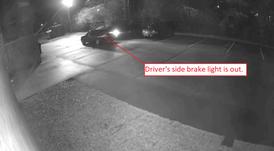 La videovigilancia muestra que aproximadamente a las 9:31p.m, un sedán Chevrolet entró en el estacionamiento de la estación de bomberos con las luces apagadas.