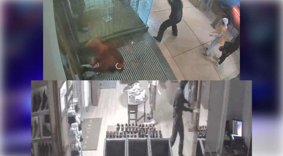El video de vigilancia muestra al menos a seis sospechosos con sudaderas con capucha, máscaras y guantes armados con cortapernos y bolsas. Los sospechosos entraron rompiendo cristales y cortando el cable de seguridad.