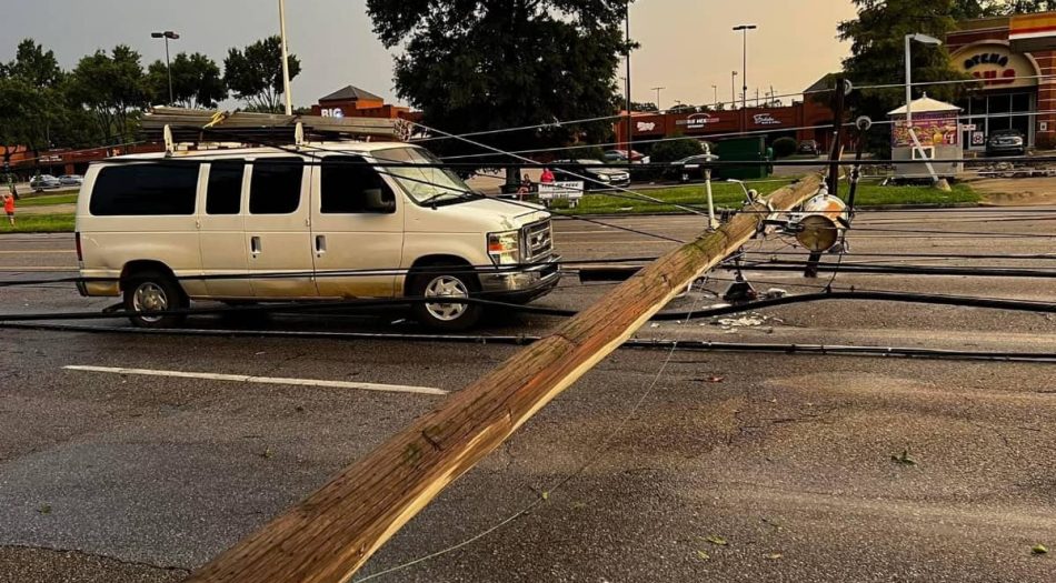 Una línea de once postes y líneas eléctricas asociadas fueron derribadas por los vientos en el área de Winchester Rd. y Kirby Rd.