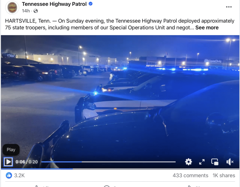 Para contener el desorden y asegurar el perímetro del penal, se movilizaron 75 efectivos de la Patrulla de Carreteras de Tennessee (THP), quienes colaboraron con agencias locales para evitar que los reclusos salieran de la zona controlada.