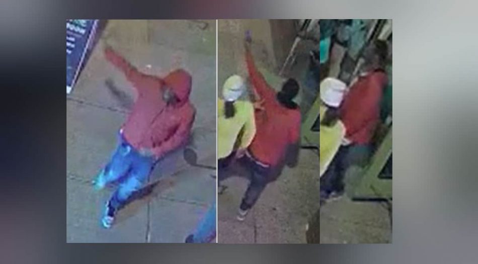 El video de vigilancia en el área mostró al hombre involucrado en una pelea antes de recibir varios disparos de un hombre con una chaqueta roja y jeans azules, dijo la policía.