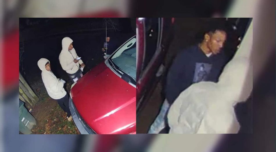 Estos hombres, que aparecen en las imágenes de vigilancia, son considerados personas de interés en este caso de homicidio.