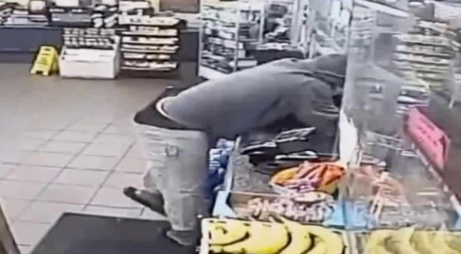 El empleado, temiendo por su vida, obedeció. El sospechoso se asomó por la ventana para sacar la caja registradora, momento en el cual el empleado logró cerrar la puerta utilizando el botón del controlador. Sin embargo, el ladrón abrió la puerta con fuerza y huyó del lugar a pie con el dinero de la caja registradora.
