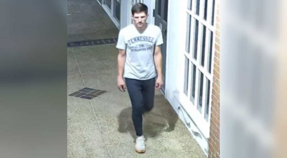Según los registros visuales, el sospechoso en cuestión es descrito como un hombre blanco, quien llevaba puesta una camisa con el distintivo de Tennessee, pantalones de color negro y zapatos blancos.