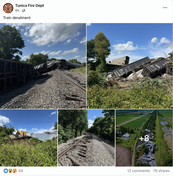 Condado de Tunica, MS — El rugido metálico y el estruendo del acero rompieron la calma de la tarde este lunes cuando un tren de carga se descarriló a escasos metros del centro de rescate de animales ARRF, ubicado cerca de la Carretera 3. Aunque el incidente causó alarma, la Oficina del Sheriff del Condado de Tunica confirmó que no se reportaron personas heridas.