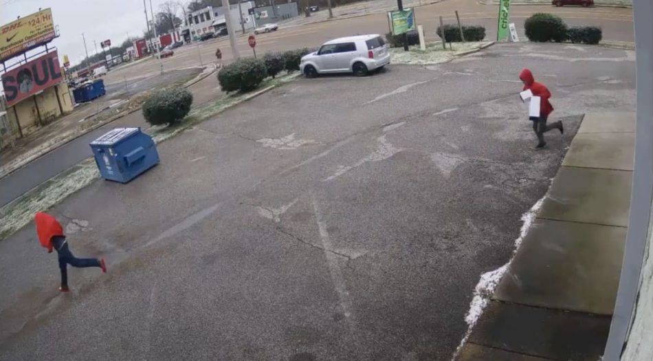 Los hombres no pudieron obtener dinero de la caja registradora, pero el video de vigilancia muestra a un hombre huyendo con mercadería.