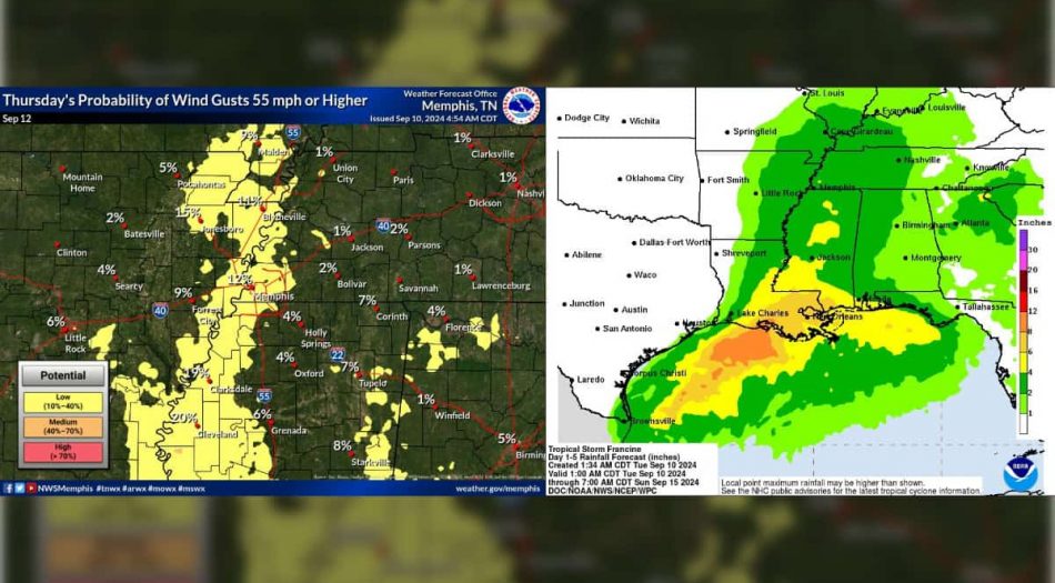 Pronóstico para Memphis para el jueves 12 de septiembre de 2024 Tormenta Tropical Francine