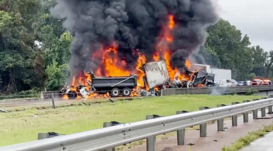 Al menos una persona quedó atrapada en su vehículo cuando el fuego envolvió la escena, dijo la policía estatal de Arkansas. ArDOT confirmó que una persona murió en el accidente.